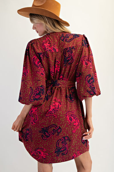 Animal Printed Wool Peach Shirt Dress