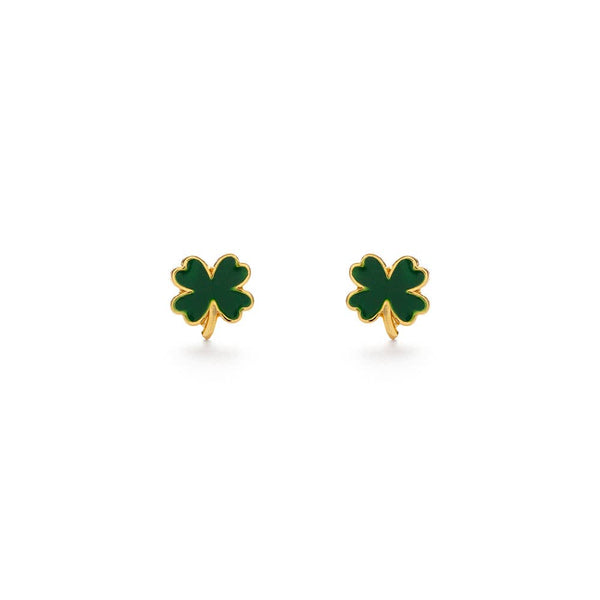 Lucky four leaf clover studs fun for St Patrick's day or any day you're feeling lucky. Made of 14k gold plated brass + hand painted in New England. Made from vintage molds in the USA.