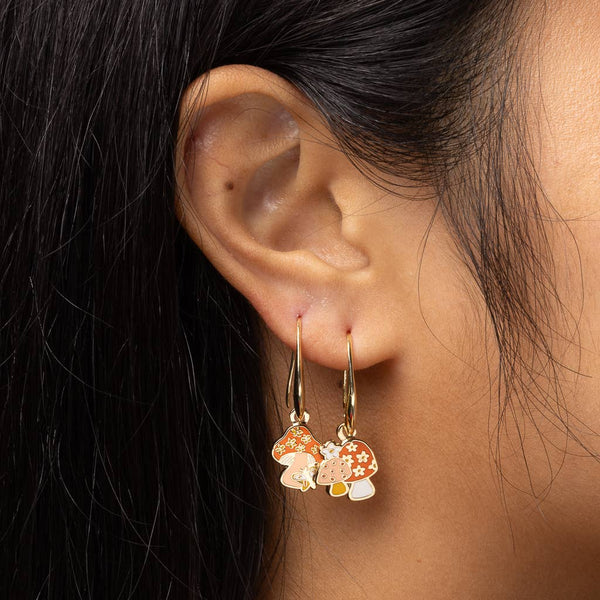 Mushrooms and butterflies collide for a wonderfully psychedelic and mismatched earring set.