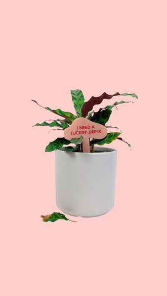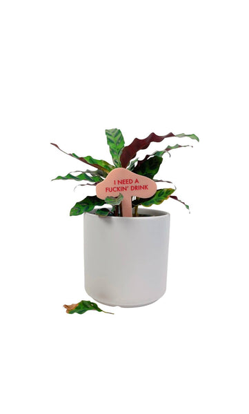 Tuff Talkin' Plant Stakes for watering reminders and encouraging growth. Made in NE Indiana with water-resistant material for longevity. Each thoughtfully designed plant marker is 4" tall.