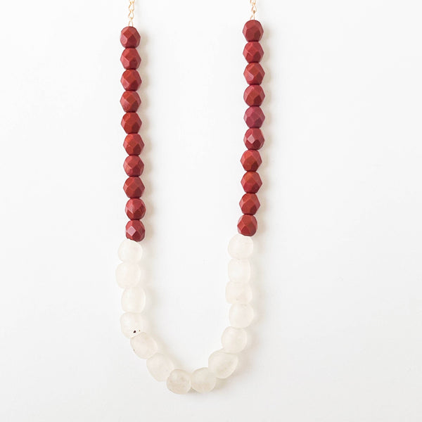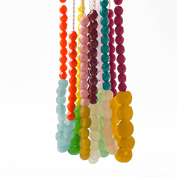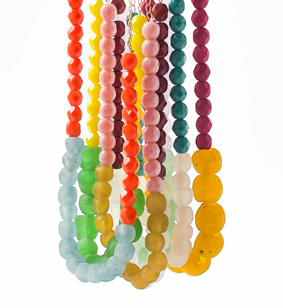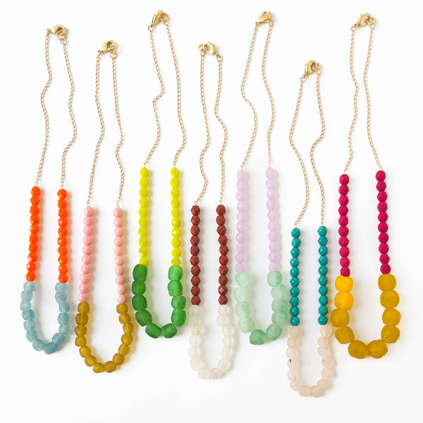 PLEASE NOTE- Each one of the recycled glass beads is meticulously crafted by hand, ensuring that every bead possesses its own distinct characteristics. This lends the necklace a charming and uniquely handmade essence.