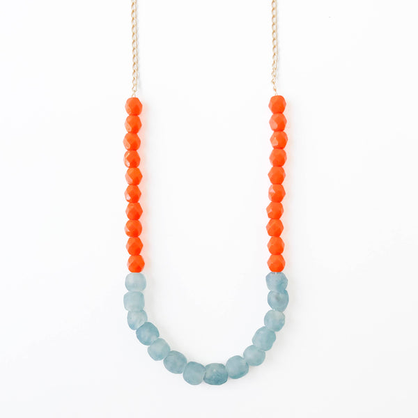 Orange with recycled blue glass beads