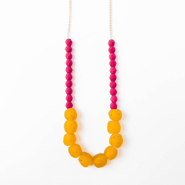 Magenta with recycled warm yellow bead