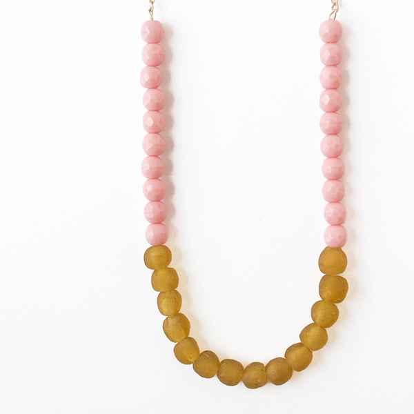 Pink with recycled ochre glass beads