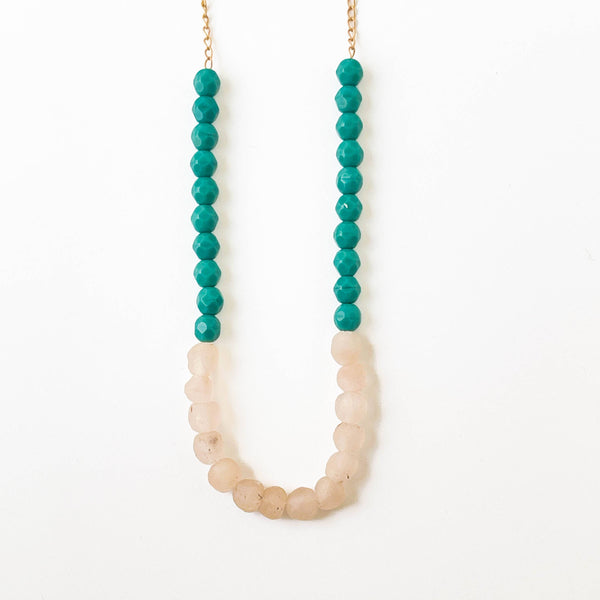 Turquoise with recycled pale blush beads