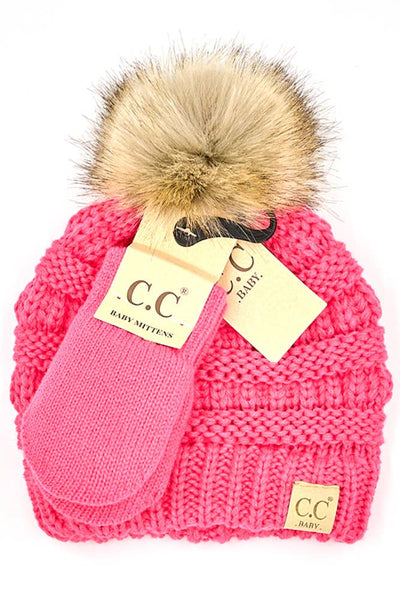 C.C Baby Solid Ribbed Pom Beanie and Mitten Glove