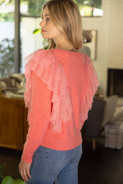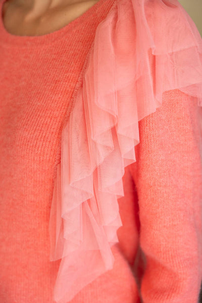 34916 Layered Tulle Detailed Sweater Top