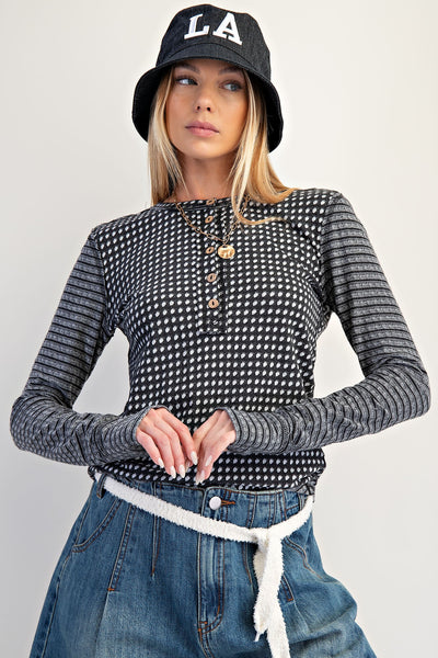 Thermal Mix Button Front Henley Top- Two Color Variants Available