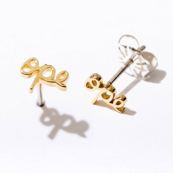 14K Gold Plated Ope Script Stud Earrings - Single or Pair