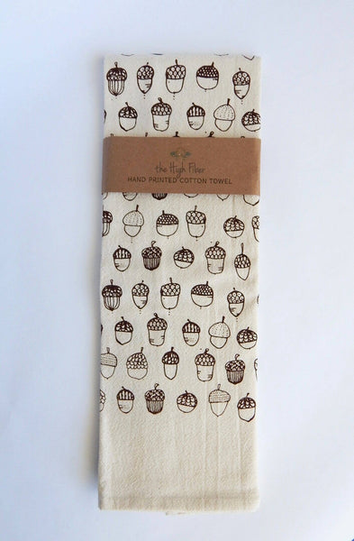 Handprinted with our acorn illustration in our studio in Asheville, North Carolina using water based, environmentally friendly, non toxic, and permanent inks.