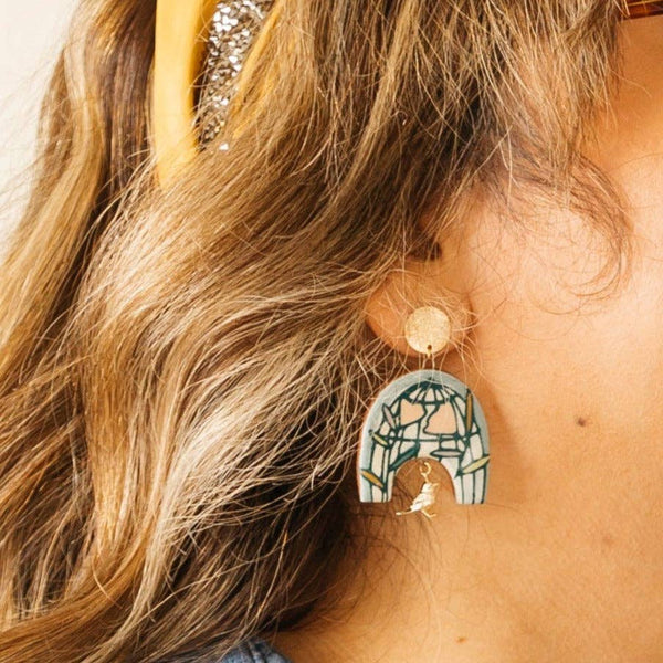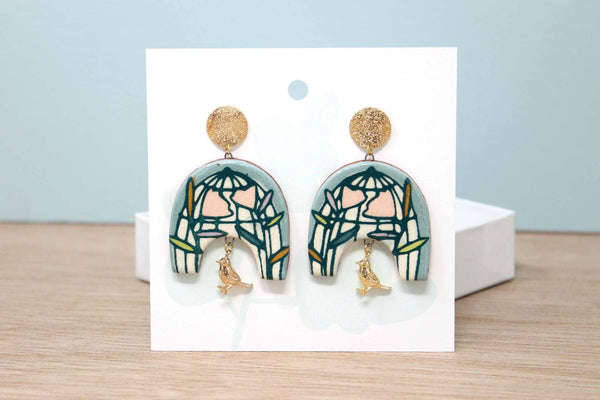 These ceramic statement earrings showcase a glimpse of my process and illustrations. Each earring is made with the same transfer technique used to make all my work.