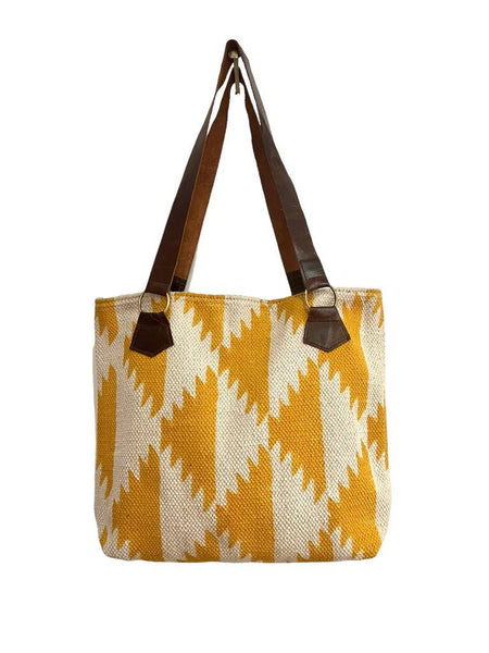 Made from repurposed jute rugs in Northern India and hand block printed.