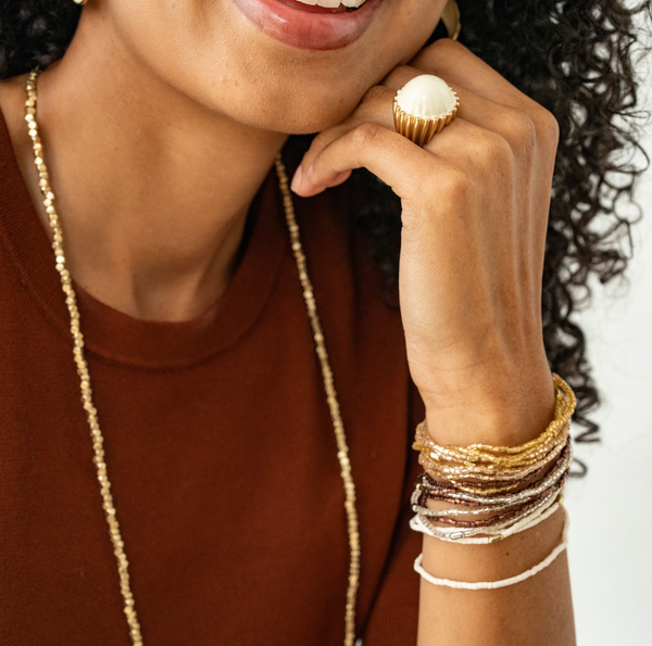 Every bracelet is meticulously hand-strung by skilled artisans, resulting in lavish works of wearable art designed to highlight your fierce, maximalist flair.