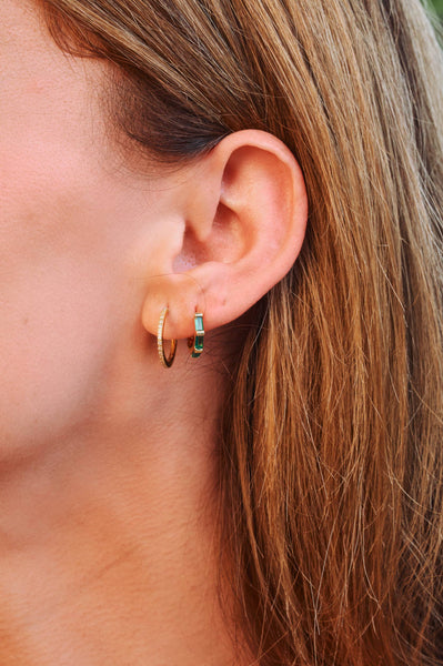 * Emerald cubic zirconia gems * waterproof gold- stainless steel and 14k gold * 8mm in size