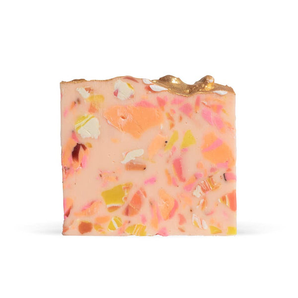 Ingredients: Purified water, saponified oils of organic olive, organic coconut, palm, shea butter, select essential and/or fragrance oils, mica, oxides, cosmetic glitter.