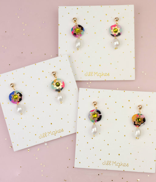 Earrings are cut from abstract hand painted acrylic, so they will arrive mismatched! Because of this, we are not able to accommodate requests for specific colors or patterns.