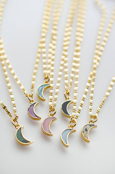 Each pendant is a natural stone, with a gold plated over sterling silver border.