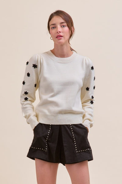 Pullover Sweater With Floral Embroidery Sleeves- 2 Colors